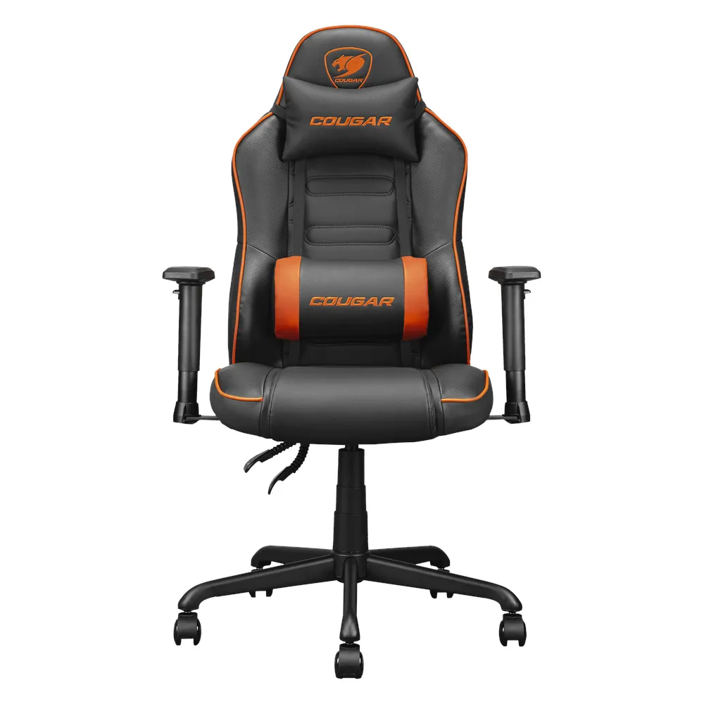 Cougar Fusion S Ergonomic Gaming Chair, Skin-Friendly PVC Faux Leather, Class 4 Gas Lift Cylinder, Metal 5-Star Base, Built-in 3D Curved Lumbar Support, Multi-density Foam Seat, Recline Up to 130º, 2D Adjustable Armrests, 120 kg Weight Limit, Black & Orange, 1 Year Warranty | 3MFSL0RB-0001