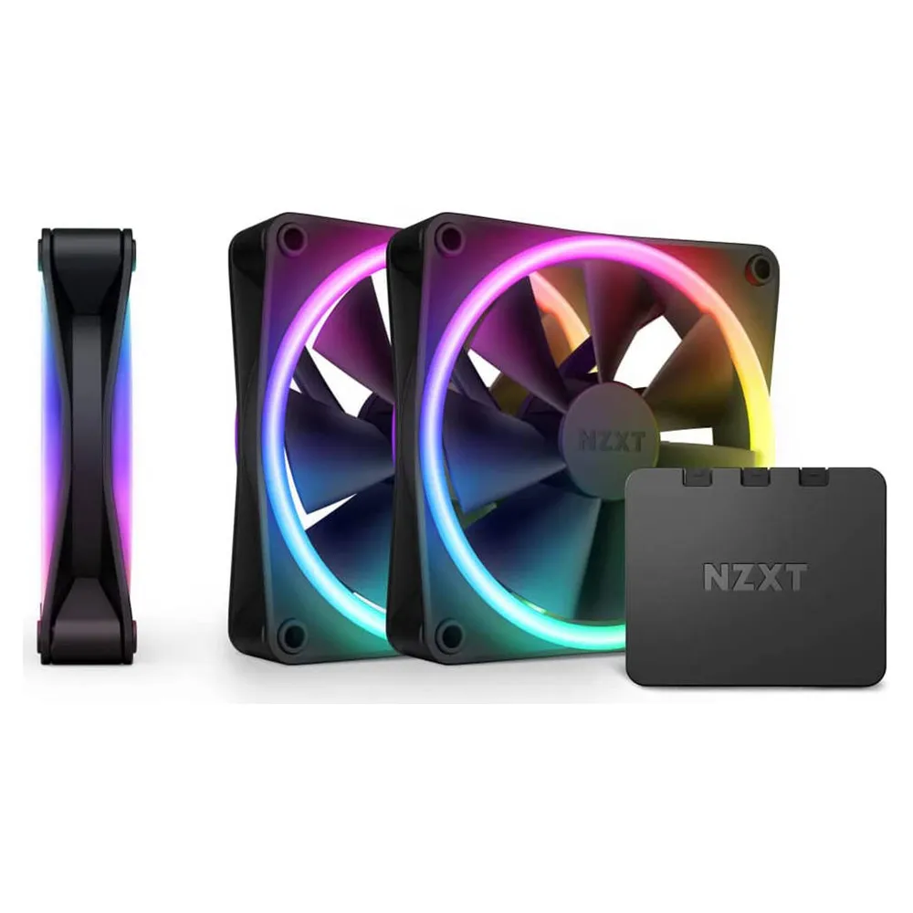 NZXT F120 RGB Duo Case Fans with RGB Controller, Pack Of 3, Fluid Dynamic Bearing, 120mm Fan Size, 1800 rpm Fan Speed, 20 Individually Addressable LEDs, Black, 1 Year Warranty | RF-D12TF-B1